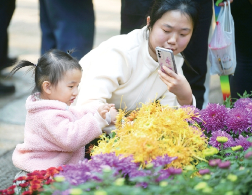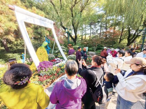 11月5日,市民游客在趵突泉景区赏泉观菊,沉浸式打卡泉城最美秋日。